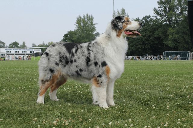 Na hlavě by bílá barva neměla převažovat, oči musí být úplně obklopené barevnou srstí s dostatkem pigmentu. Zbarvení merle věkem psa tmavne.