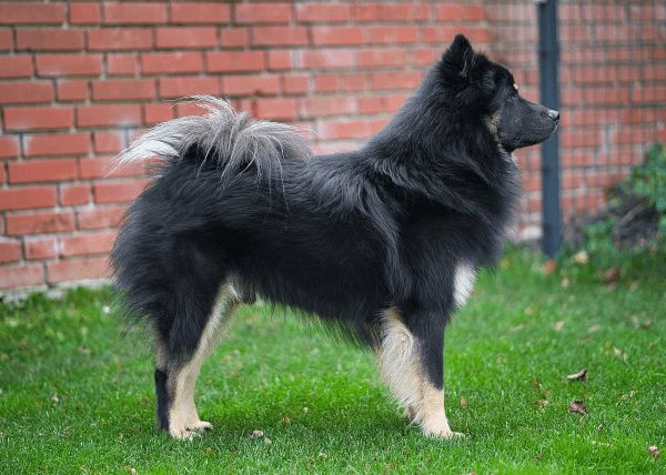 CELKOVÝ VZHLED: Harmonicky stavěný, středně velký špicovitý pes se vztyčenýma ušima v různých barevných rázech, s délkou srsti, jež ještě ponechává rozeznatelné proporce těla, středně těžké stavby kostry.
